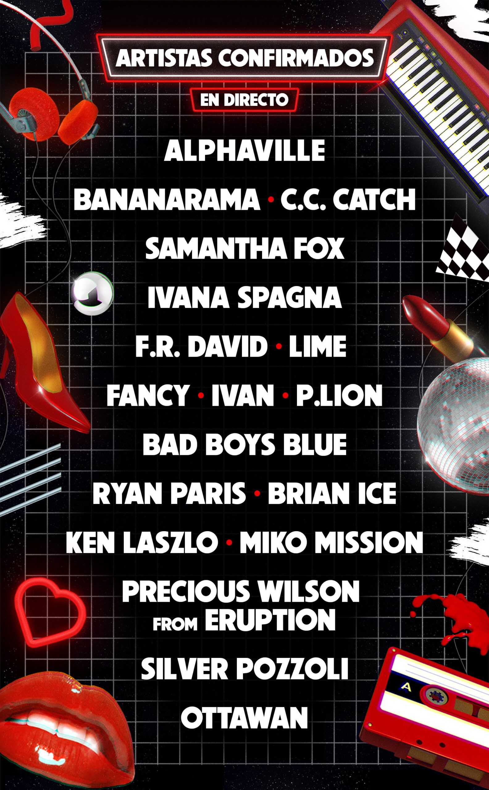 Early Entry: acceso a la Fan Zone donde podrás disfrutar hasta el inicio del show de una Pre-fiesta VIP exclusiva con DJ y servicio de refrescos, cerveza y snacks fríosPersonal de atención VIPAcreditación conmemorativaRegalo edición limitada Discoteca de los 80Asiento numerado de primera categoría con visibilidad premium