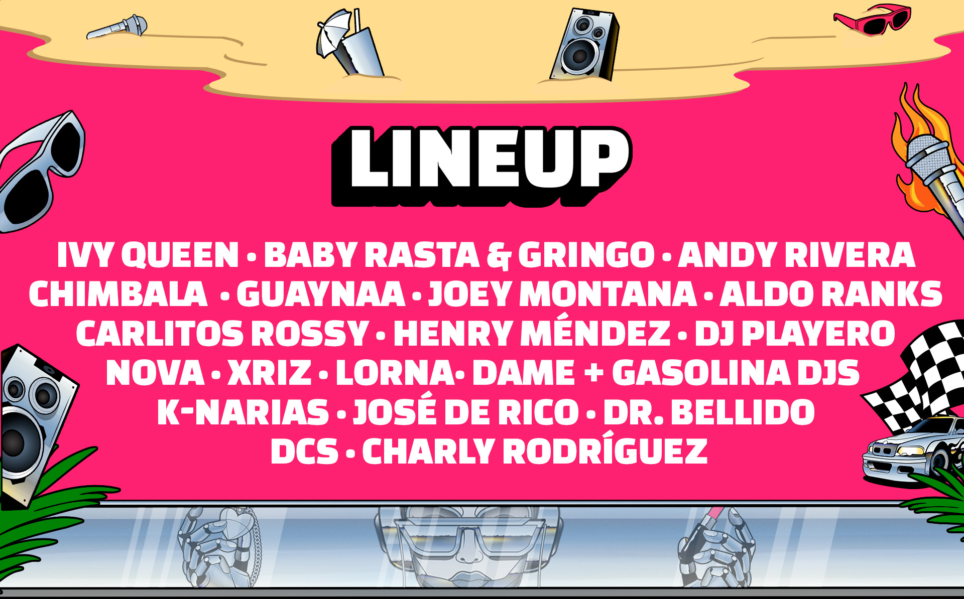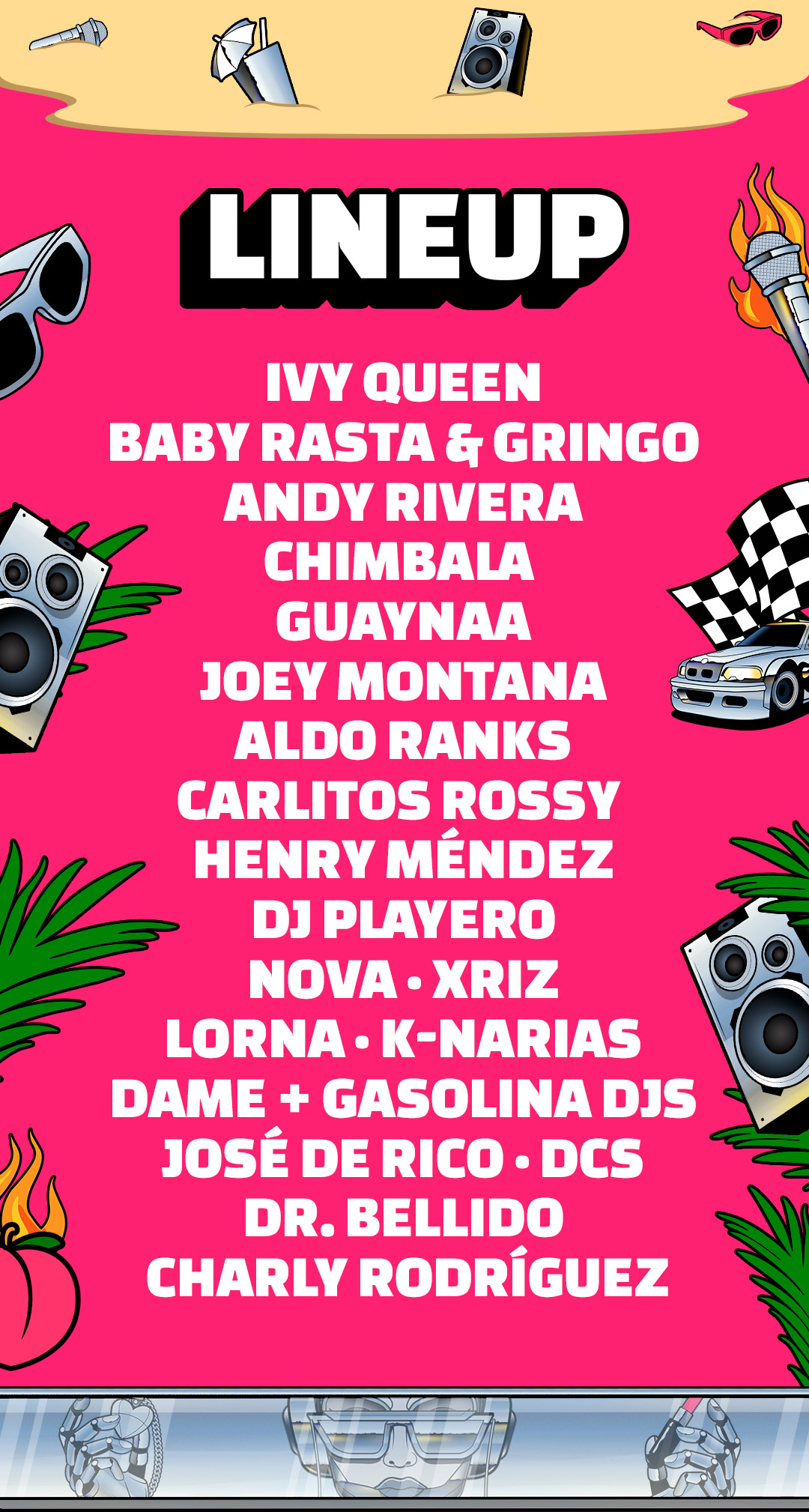 Acceso preferente al recinto por carril exclusivoAcceso a la zona Front Stage del recintoAcceso independiente para entrada y salida a la zona Front Stage del recintoAcceso a la zona General del recintoBarra de pago y aseos exclusivosAcreditación conmemorativa20% de descuento en merchandising